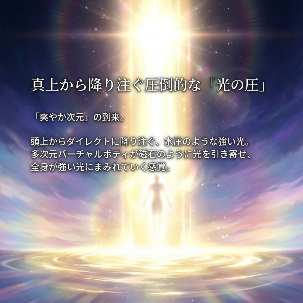 ・2ヶ月後や8億年後の多次元トラベラーによるナビゲートや、真上からの強い光の圧による浄化など、ダイナミックな展開も。