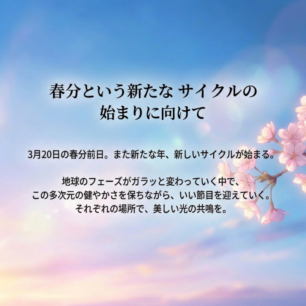 2026/3/19, 新月, 宇宙大晦日, 宇宙元旦, 宇宙遊泳次元, おまかせ次元, ペプラム次元, 8億8888万次元, あばら骨次元, 浄化, 光の柱, 細胞調整, 無限セルフ, 最適化, アップデート, 光の栄養, 春分, 潜在意識, 脳の調整